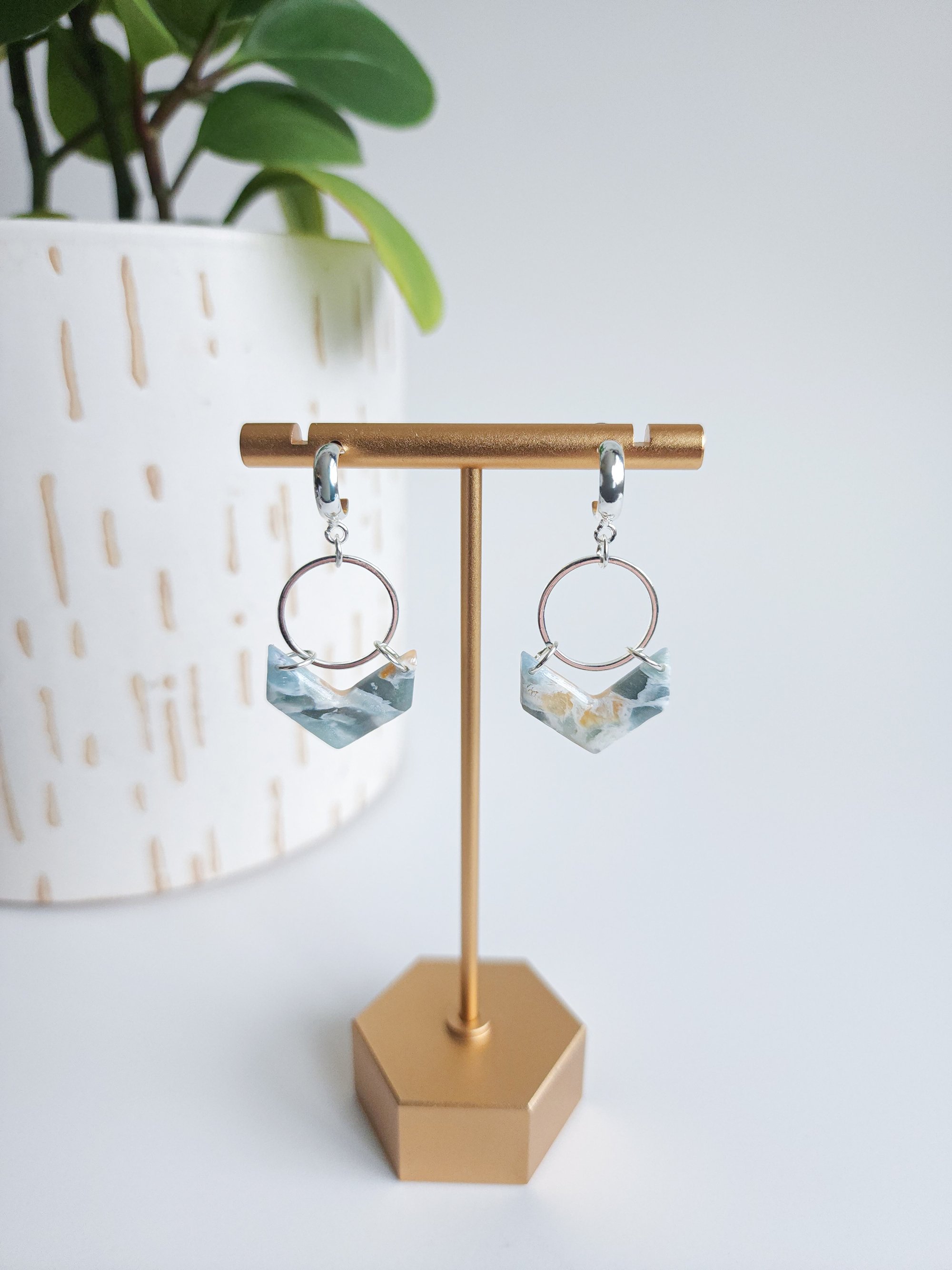 Please note: these earrings are made from a slab and that every earring is unique and no two pieces are the same, slight variation may occur compared to the pictures.
