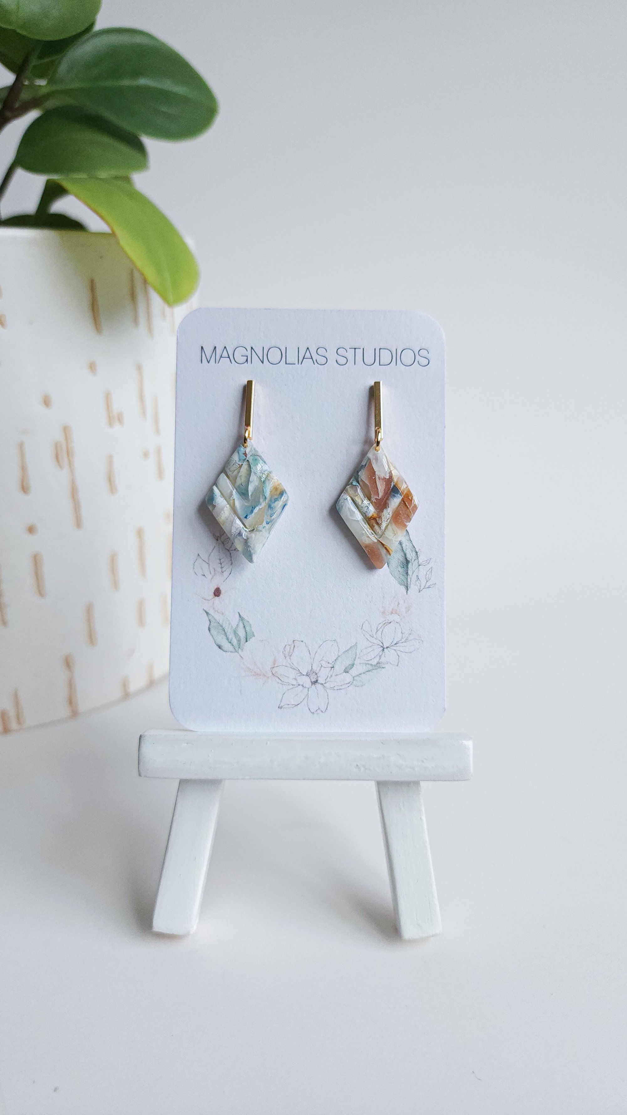 Please note: these earrings are made from a slab and that every earring is unique and no two pieces are the same, slight variation may occur compared to the pictures.